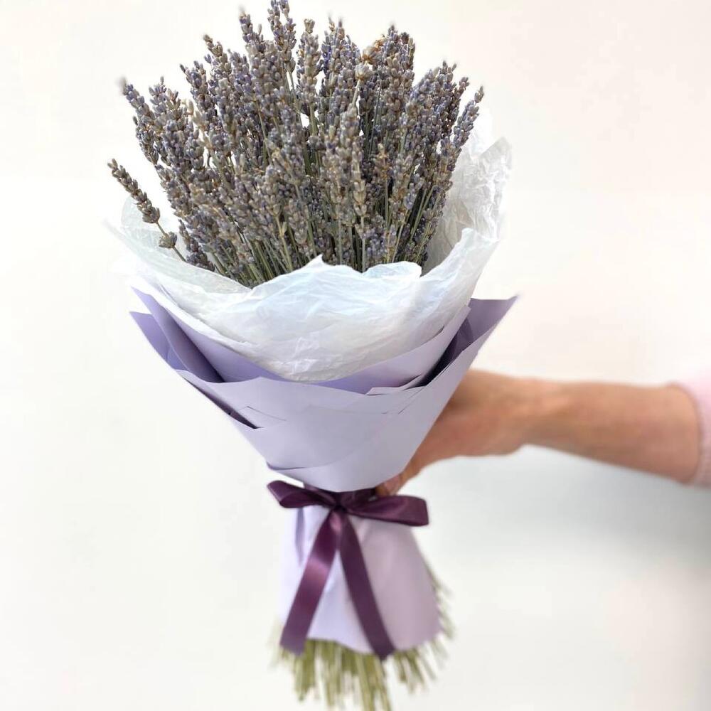 Лаванда (сухоцвет) – 100 шт.Бумага – 1 шт.Тишью белое – 1 шт.Лента атласная – 1 шт.