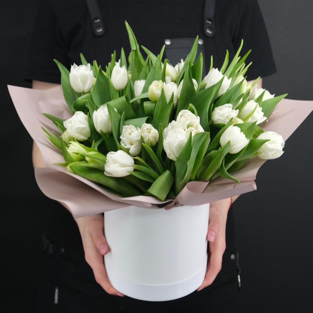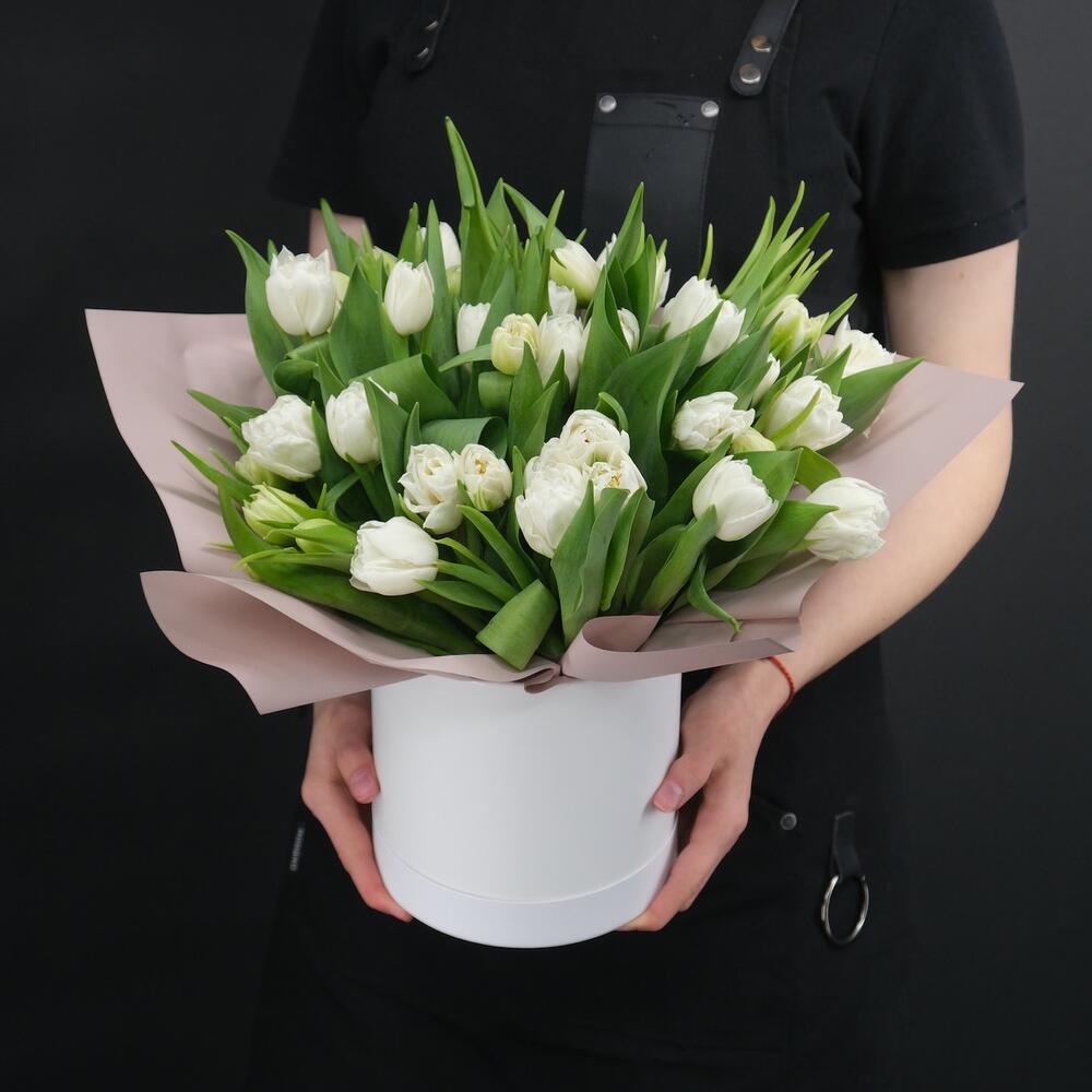 Шляпная коробка – 1 шт.Тюльпан пионовидный – 31 шт.подкормка для срезанных цветов – 1 шт.упаковка (аквапак) – 1 шт.