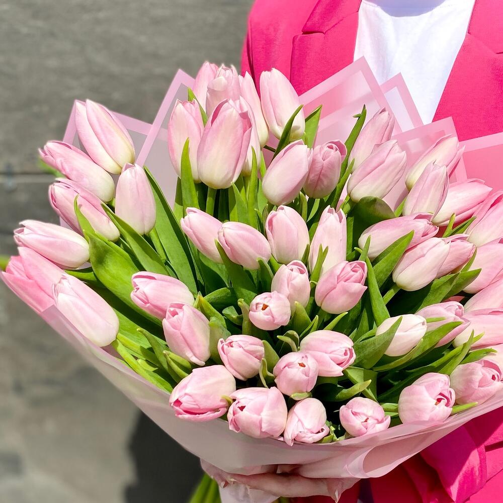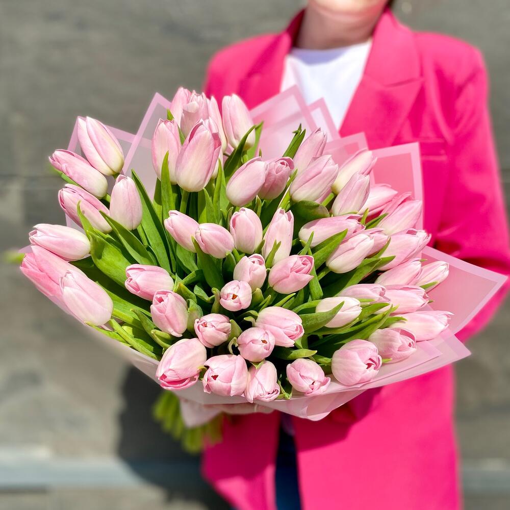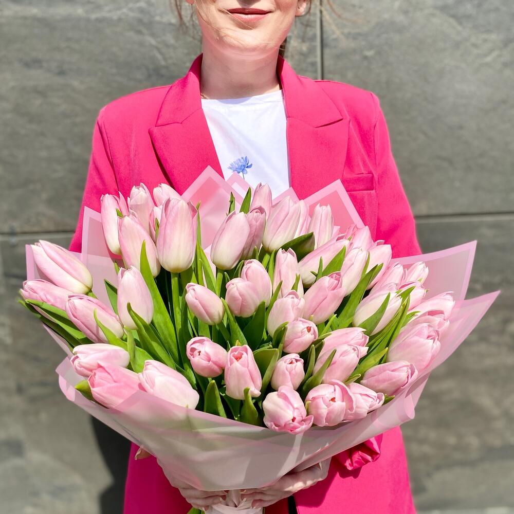 Тюльпан – 51 шт.Лента атласная – 1 шт.Упаковка дизайнерская – 3 шт.