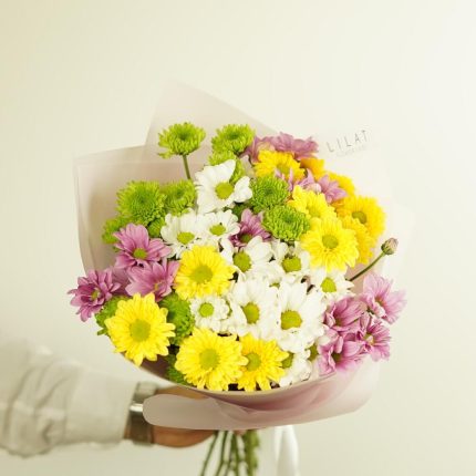 Букет из 25 разноцветных альстромерий в стильной упаковке “Яркие искры”